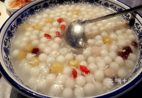 酒酿圆子是江南地区汉族小吃。以果料为馅,滚包糯米粉的小圆子与酒酿同煮而成。酒酿味浓甜润,圆子较糯,馅甜香。酒酿圆子属于甜点,主要原料是糯米、酒酿等,为温补强壮食品,有补中益气,健脾养胃的作用。
