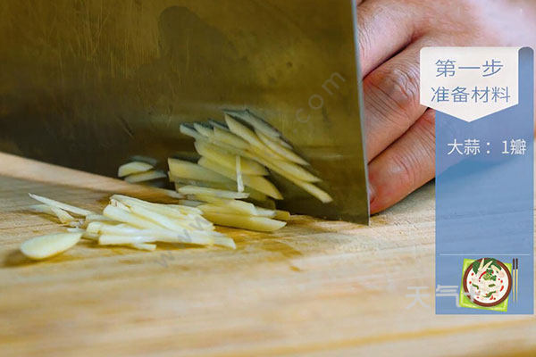 丝瓜2根,蒜末1碟,盐1勺,鸡精1勺;
