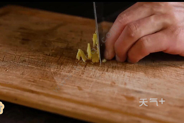 3.取出姜片、葱段、蒜片,覆上保鲜膜,放入冰箱腌制12小时,蜂蜜与凉水1:1兑成蜂蜜水。