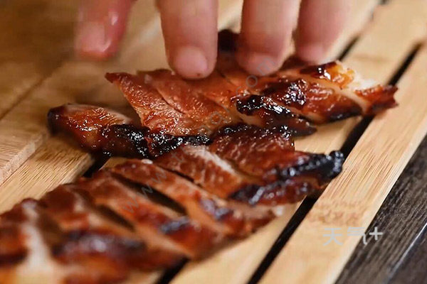 5.取出翻面,刷上蜂蜜水,继续烤16分钟,取出再次刷上蜂蜜水,叉烧肉的做法 怎么做叉烧肉再烤3分钟。烤好后取出,稍微放凉后切片即可。