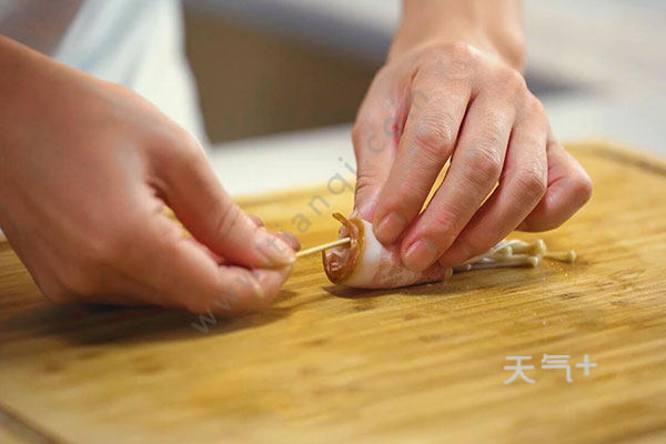 2、金针菇富含蛋白质,还含有VB1、VB2、VC等多种维生素,且富含钙、磷、铁等多种矿物质,营养十分丰富。金针菇的铁含量是菠菜的20倍,又有许多纤维质,可促进新陈代谢,并有镇定的作用,适合孕妇产后多吃。培根金针菇的做法 怎么做培根金针菇