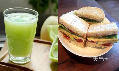 材料:蔬菜水果汁,煎蛋三明治