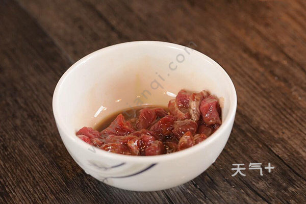 1.牛肉切丁,放入生抽1勺、蚝油半勺、料酒1勺、淀粉1勺腌制20分钟。