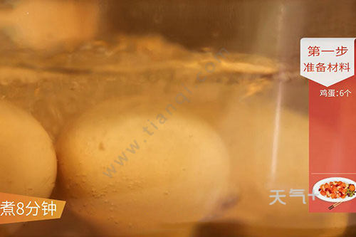 1.鸡蛋洗净,冷水入锅,水开后煮8分钟,捞出鸡蛋,用勺子轻敲蛋壳,使其产生裂纹;