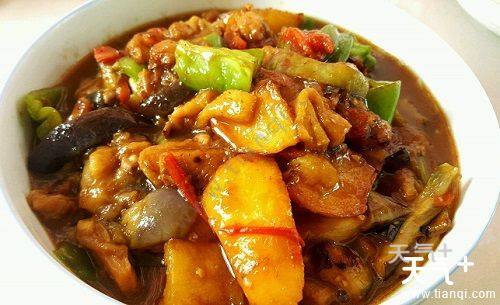 东北大乱炖是东北地区的知名菜肴,比较普遍的家常美食,如果你是外地人,去黑龙江一定要吃地道的东北大乱炖,乱炖做法简单,将豆角、猪肉、土豆、西红柿、茄子依次入锅,先炒后炖的菜品。有将近10种食物,食材丰富,口味多样!