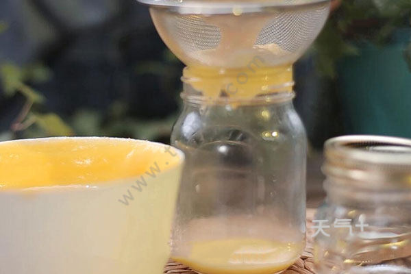 3.接着让奶锅隔水加热,并不停搅拌,然后加入软化的黄油,过筛装进瓶中就可以了。