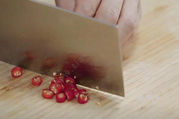 1.先将空心菜洗净,切成1.5厘米的段备用,小米辣切段,姜切末。