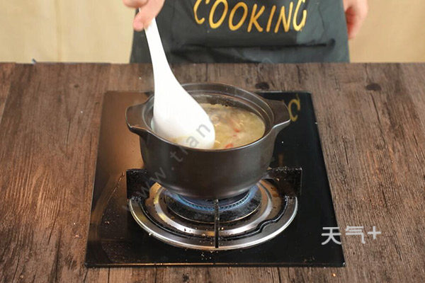 3.放入枸杞继续焖煮,最后根据个人口味添加冰糖即可。