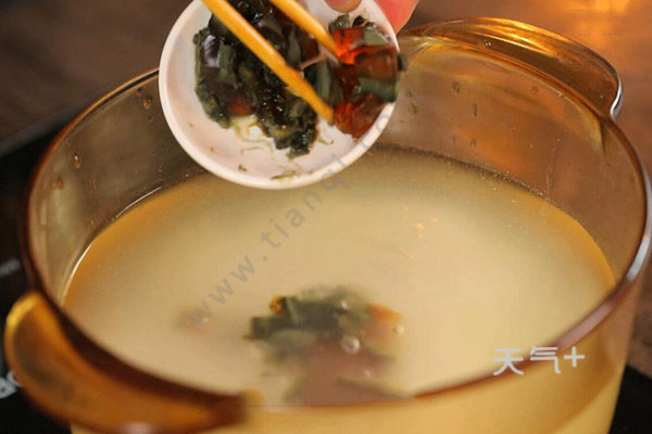 3.加入瘦肉,加入盐、鸡精、香油,撒上葱花皮蛋廋肉粥就完成了。