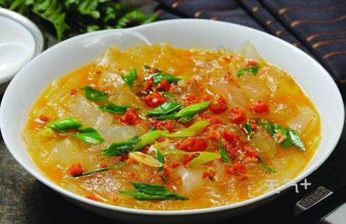蟹黄粉皮也是在泰州极受欢迎的美食,有着十分明亮的菜色,而且营养也是非常丰富的。