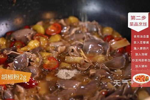 姜1块,蒜3瓣,豆瓣酱半勺,生抽1勺,淀粉1勺,胡椒粉2克,泡椒鸡胗的做法 泡椒鸡胗怎么做白糖半勺;