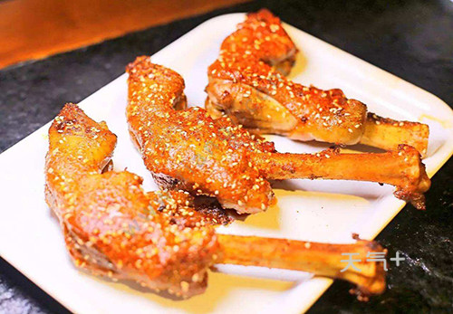 锦州的名小吃——烤“羊蹄”,烤羊蹄之所以好吃在,主要是选料好而且每一个步骤都很讲究,羊蹄洗干净之后放锅里面煮熟,然后把调味料放进羊蹄里面进行腌制,20多分钟之后,把腌制过的羊蹄放在烤炉上烤,烤好就可以吃了,这种烤羊蹄是锦州一绝,色香味美。