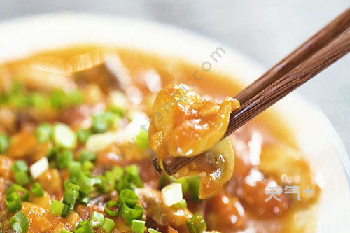 4.调入盐半勺、鸡精半勺拌匀后装盘,撒上葱花即可。