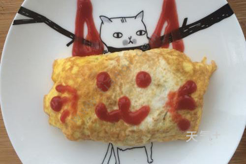 6、包好后翻转,用番茄酱画出喜欢的猫猫图案即可。儿童营养早餐食谱大全 儿童早餐做法介绍