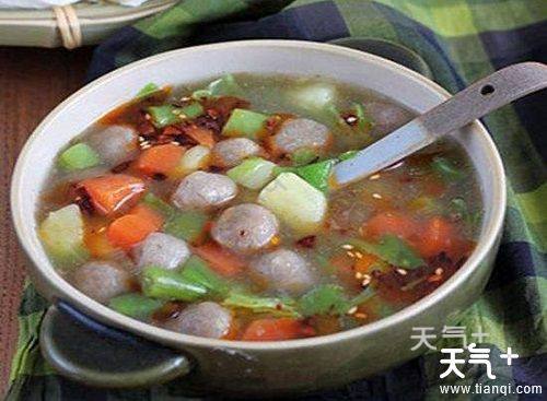 西安肉丸胡辣汤属于回族人的清真食品,主要食材为牛肉丸子、白菜、土豆块、胡萝卜、菜花、莲花白、西葫芦等烩制而成。肉丸胡辣汤是西安“最受欢迎”的早餐