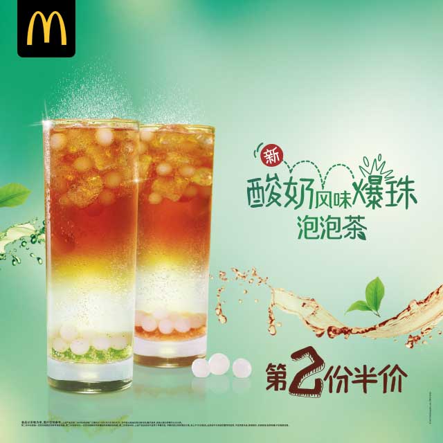 爱是,和你一人一杯,麦当劳酸奶爆珠泡泡茶第二份半价,泡泡升腾,如初见你时的紧张,颗颗爆爆弹,心头炸开酸酸甜甜。