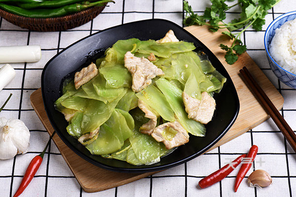 莴笋的做法 莴笋炒肉的做法莴笋剥皮,切片,生姜切片,大蒜切蒜粒,猪肉洗净切片,碗中加入淀粉和盐,倒入清水拌匀,倒肉片抓匀,腌制10分钟,锅里倒适量油,烧热,下生姜片和大蒜粒炒香,下肉片炒匀,炒至变色盛出,留底油,下入莴笋片翻炒至断生,再倒肉片一起炒,转小火,加入盐和鸡精调味,关火盛出即可。