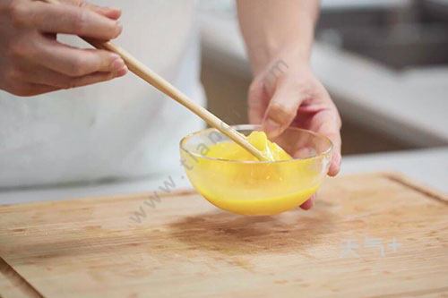 2.鸡蛋磕开加盐半勺打散;
