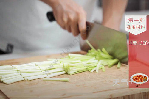 1.韭黄洗净切段备用;