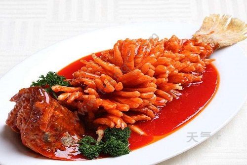 熘素桂鱼是江苏宿迁的一道名菜,虽然名字叫熘素桂鱼,但实际上并不是桂鱼做成的,而是用山药泥,加上一些香菇、春笋制成的,然后用豆腐皮包上,形状与桂鱼十分相似,所以又叫做熘素桂鱼,味道酸甜,十分开胃。