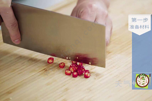 1.小米椒2根切丝,大蒜2瓣切末;