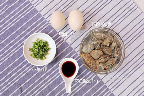 花蛤100克,鸡蛋2个;