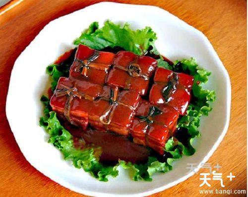 酱汁肉相传在200多年前已有应市,当初叫酒焖汁肉,是用红胭脂作为着色原料,后来改用红米着色,进而改称为酱汁肉。 酱汁肉苏州酱汁肉,最有名的店铺是陆稿荐熟食店。该店酱汁向选料严格,配料讲究,制作精细,确实独具特色。顾客来买时,可将红卤汁浇在肉上,随买随浇,使酱汁肉保持“色泽桃红,甜而不腻,酥而不烂,人口而化”的特点。