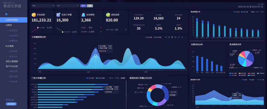 基于业务中台的搭建,餐道同时组建了数据中台,通过对接全渠道的原始数据,建立用户、门店、餐品等各种画像,并针对现上线下数据的融合,进行全渠道的数据分析,利用数据给商家展开流量的追踪和分析,得出精细化的用户画像、菜品预测、合理的商圈范围等,帮助商家形成数字决策。
