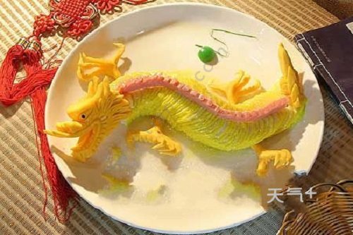 龙菜又称蟠龙菜、卷切,湖北省钟祥市的汉族传统特色名菜,属于明朝宫庭御膳佳肴。首创于湖广安陆州(今钟祥)兴献王宫邸。为宴席上的美食上品。红黄相间,装盘成龙形,肥而不腻,柔滑油润,味香绵长。现在,它已成为过年时钟祥每家每户饭桌上都能见到美食。