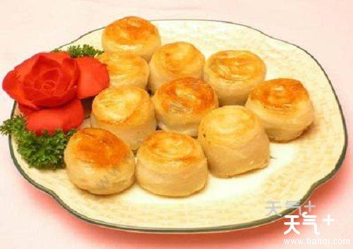 茶花点心又名太师饼,是湖北省荆门的汉族传统名点,已有一千多年的历史。相传为南宋理学家陆九渊任荆门知军时所喜爱。 此饼以精粉、熟猪油揉合为皮,面粉、熟猪油为酥,再用熟面粉、砂糖、桂花、桔饼、桃仁、冬瓜糖为馅,经擀皮包馅成形后,入温油中氽炸而成。吃口酥松清香,绵软不腻,风味别具一格。