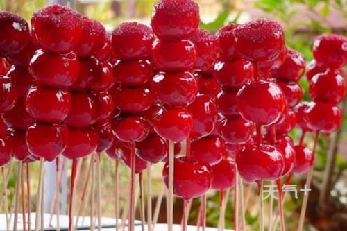 冰糖葫芦是老北京传统街头小吃,很多人都知道,在天津,糖葫芦被叫做糖墩儿。冰糖葫芦用的是野果为原料,最常见的糖葫芦用的是山楂,用竹签串成串,然后蘸上糖稀让它变硬,这种小吃虽然制作简单,但是因为口感酸甜,外观精致,还是受到了很多人的喜爱。