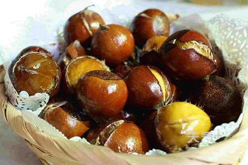 糖炒栗子想必大家都喜欢吃,老北京街头最常见的一种美味,摊贩会准备一个大锅,加入了海盐和栗子,开始翻炒,翻炒到栗子外皮开炸,倒入白糖,糖会因为高温慢慢融化,一直翻炒到糖被海盐吸收,海盐会慢慢变成深色,继续翻炒。糖炒栗子呈现的是深棕色,吃起来香甜可口,是很受欢迎的北京特色零食。