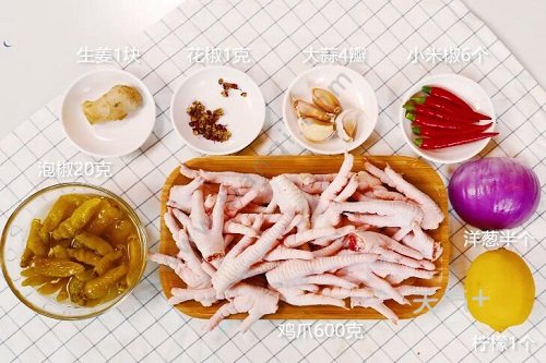 鸡爪600克,洋葱半个,泡椒20克;