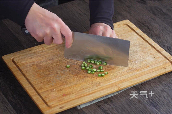 3、在刀尖抹一点水,把鸡蛋切铜钱厚度的片状;