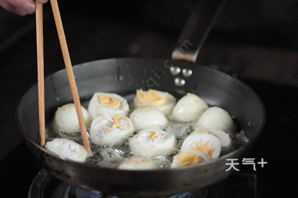 1、鸡蛋下锅,水沸后煮七八分钟,捞出过冷水去壳;