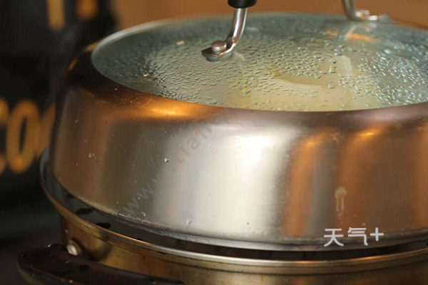 3、取10克冰糖放入挖好的雪梨中,盖上梨的顶部,放入蒸锅中蒸1小时;