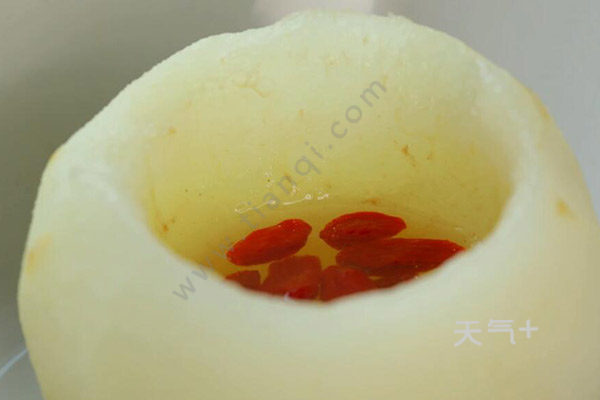 家常冰糖雪梨怎么做 冰糖雪梨的简单做法首先准备好冰糖、雪梨、枸杞等食材。将新鲜的雪梨洗净去皮,切去顶部备用,用勺子将中间的核挖空。取10克冰糖放入挖好的雪梨中,盖上梨的顶部,放入蒸锅中蒸1小时。加入枸杞2克焖5分钟,取出稍微放凉即可享用。