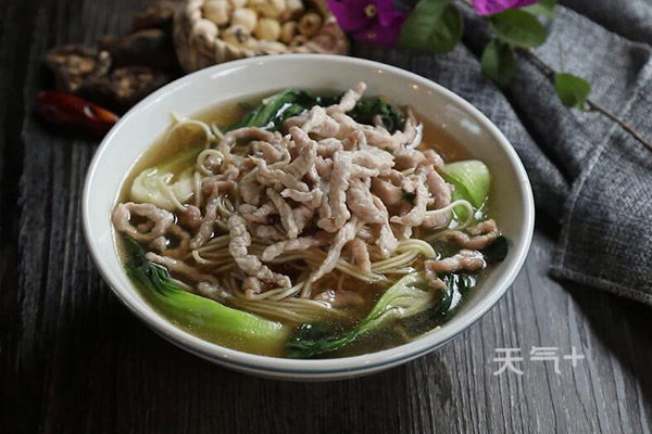 肉丝面里面可以加入喜欢的食材,还可以加入高汤,让面条更鲜。