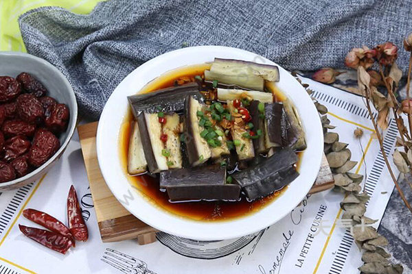 1、蒜蓉蒸茄子的家常做法 如何蒸茄子好吃茄子倒入清水洗净切条;