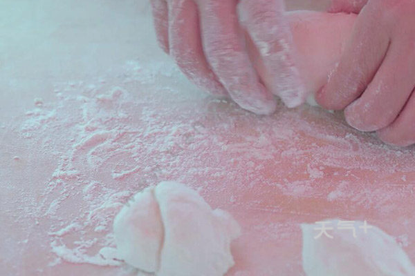 3、取出面团,将面团反复揉搓揪成大小均匀的小面团;