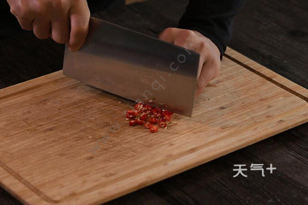 7、锅中留底油,放入姜蒜末炒香,放入青椒小米椒翻炒30秒;