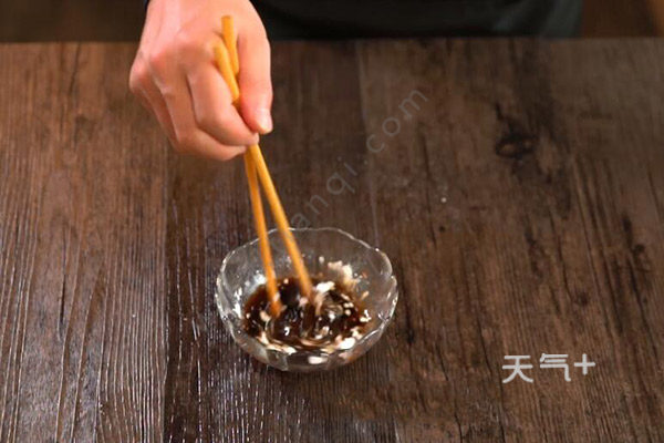5、碗中放入生抽1勺、白糖半勺、清水1勺、淀粉3克拌匀;