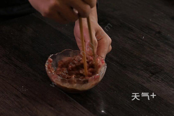 4、牛肉加入料酒1勺、胡椒粉1克、鸡蛋清1个、淀粉1勺拌匀腌制10分钟;