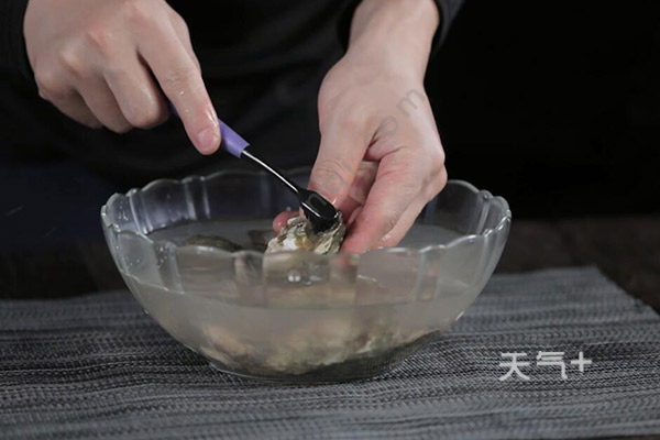 6、用小刀撬开生蚝取出蚝肉蘸着吃。