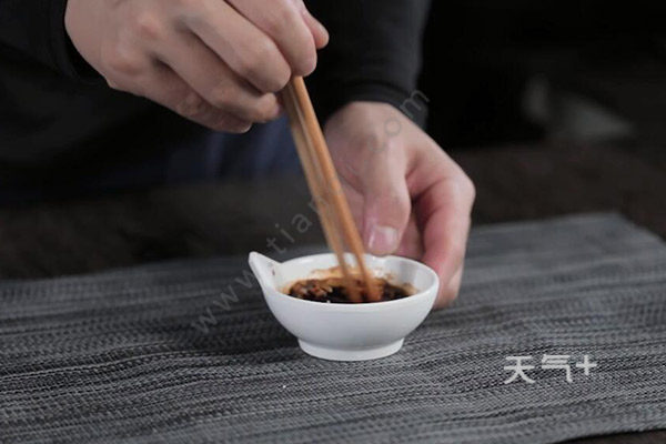 5、取小碗调入蒜姜末、生抽、白糖、醋搅匀;
