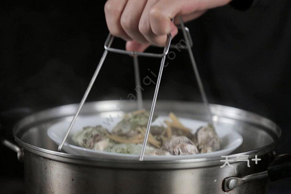 4、生蚝加入姜丝、黄酒、清水200ml,放入蒸锅中,水沸后蒸3分钟即可关火取出;