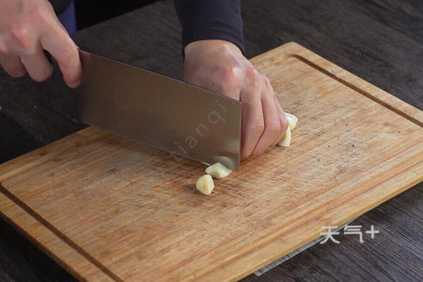 4、蒜对半切开,葱一半切段、一半切圈;