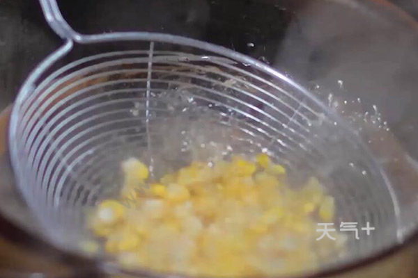 2、锅中水沸后,倒入玉米断生后捞出沥干;