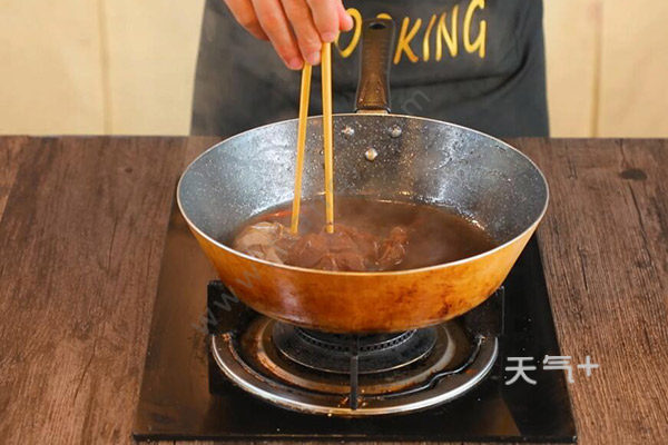牛肉夹馍的牛肉要炖煮入味,需要小火慢炖,牛肉越软烂越好吃。