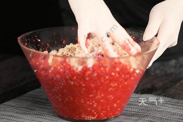 豆瓣酱的家常做法 豆瓣酱怎么做发酵豆瓣放入清水中清洗三次。红辣椒去蒂洗干净。生姜切碎。红辣椒切块后成辣椒酱,加入大量盐,倒入切好的姜末。搅拌均匀后倒入豆瓣继续搅拌,再倒入适量油,接着盛入坛子中,清理好坛口周围,盖上盖子等待发酵即可。